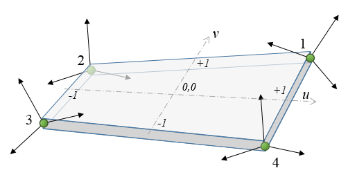 The chrono::fea::ChElementShellANCF_3443 is a quadrilateral thick shell element based on the ANCF approach with a full set of position vector gradient coordinates at each node.